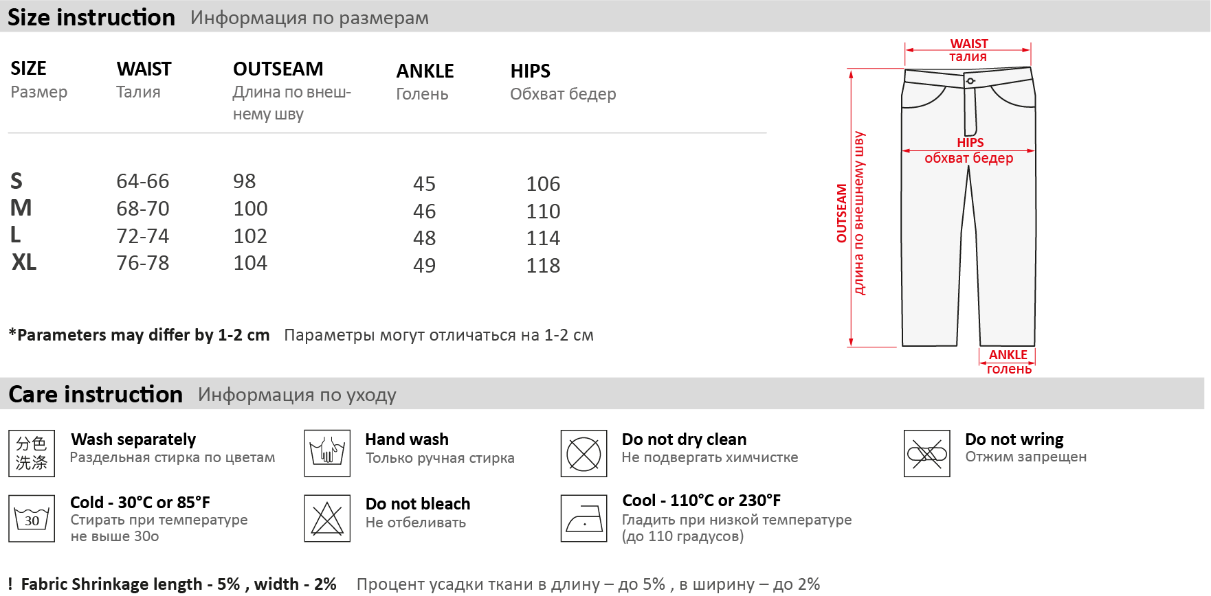Таблица размеров