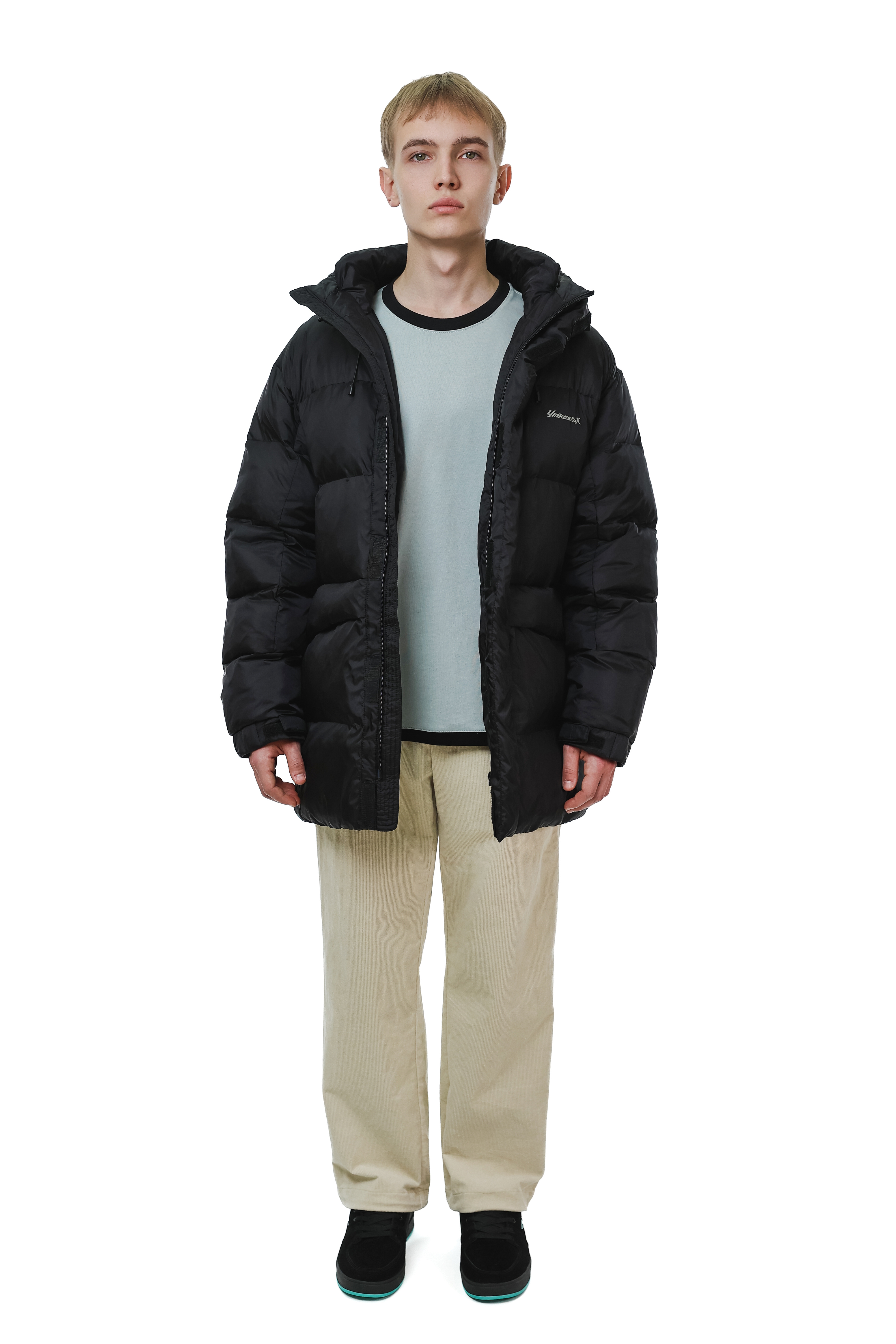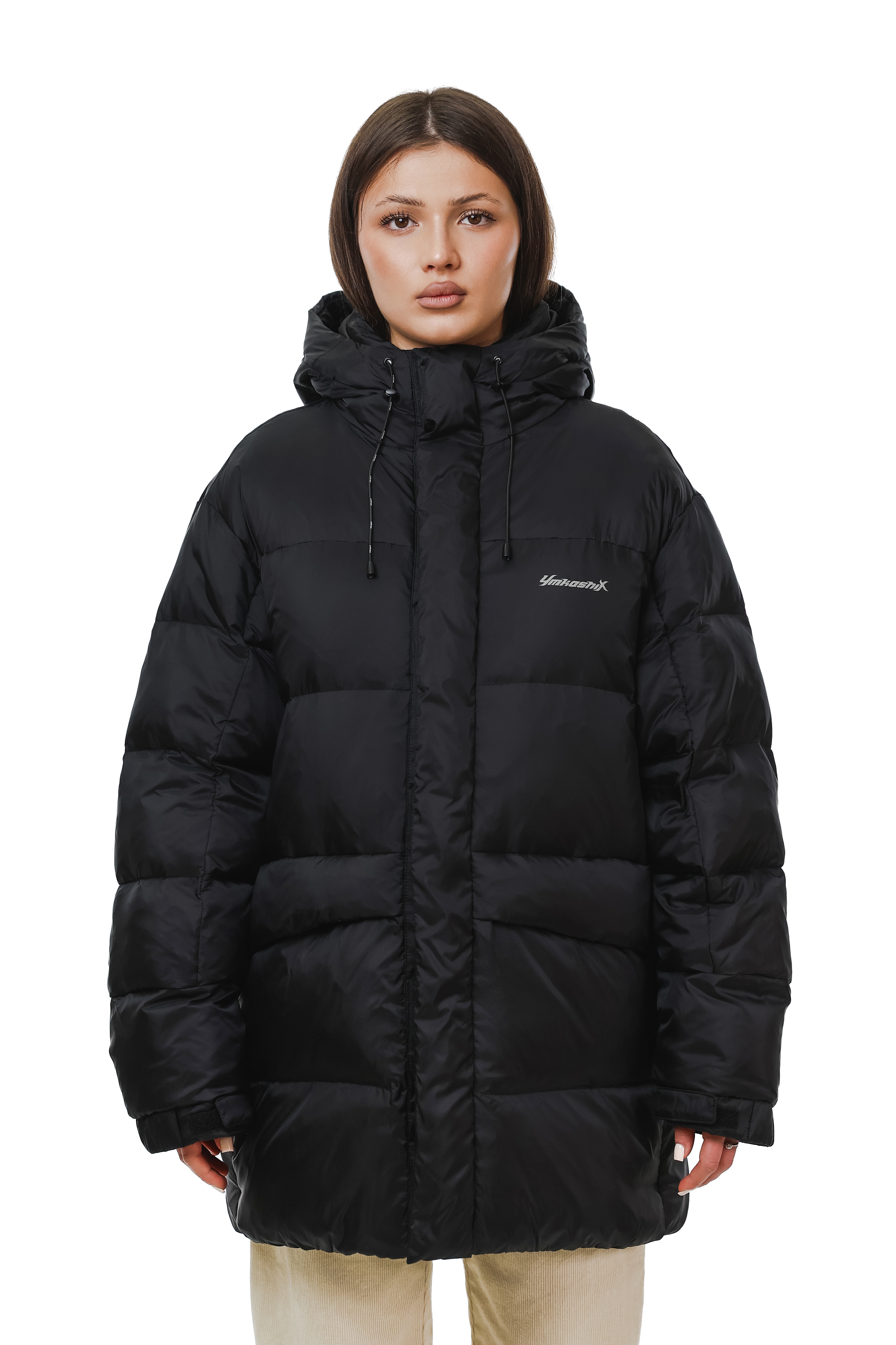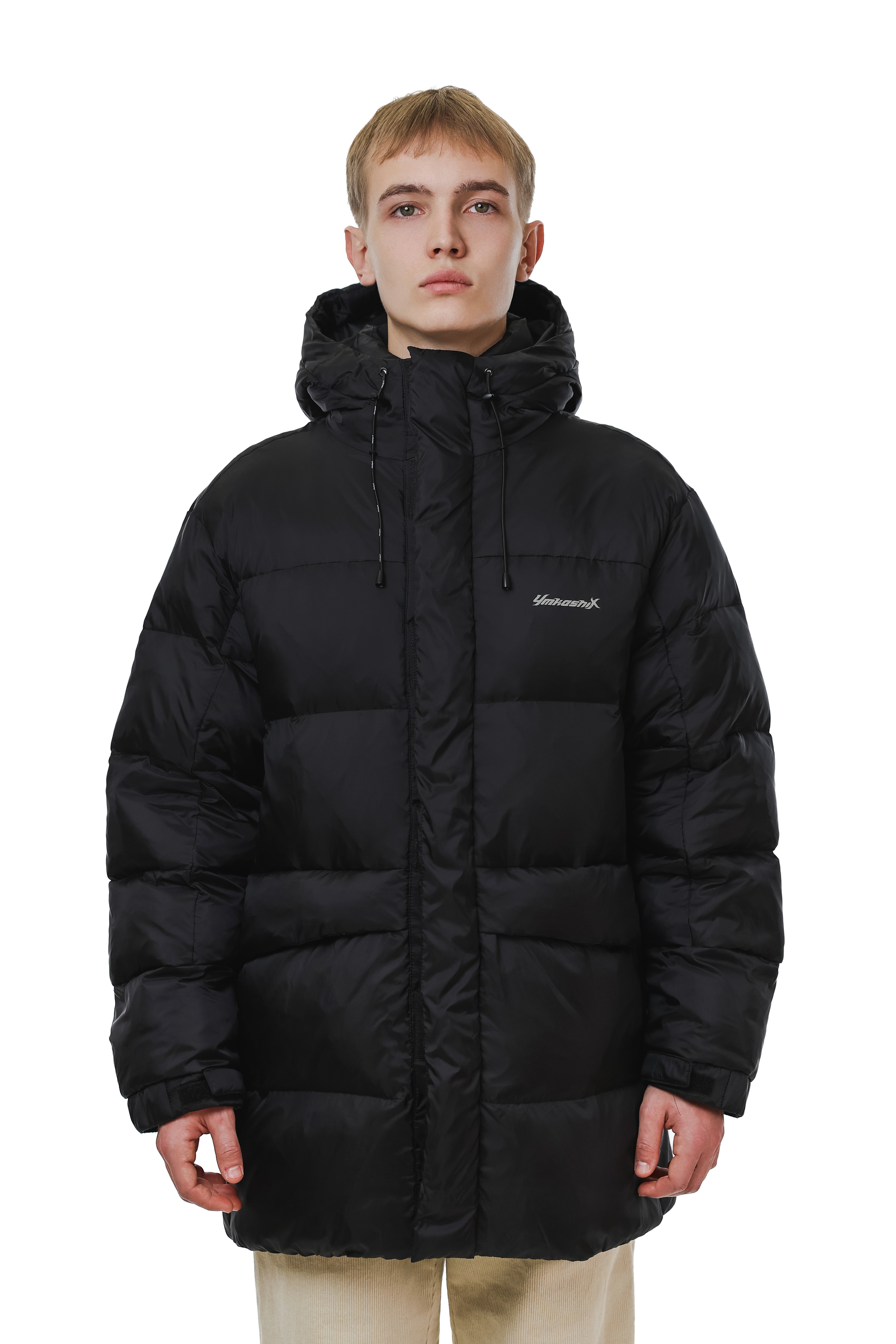 - Резиновые утяжки на поясе внутри пуховика.
