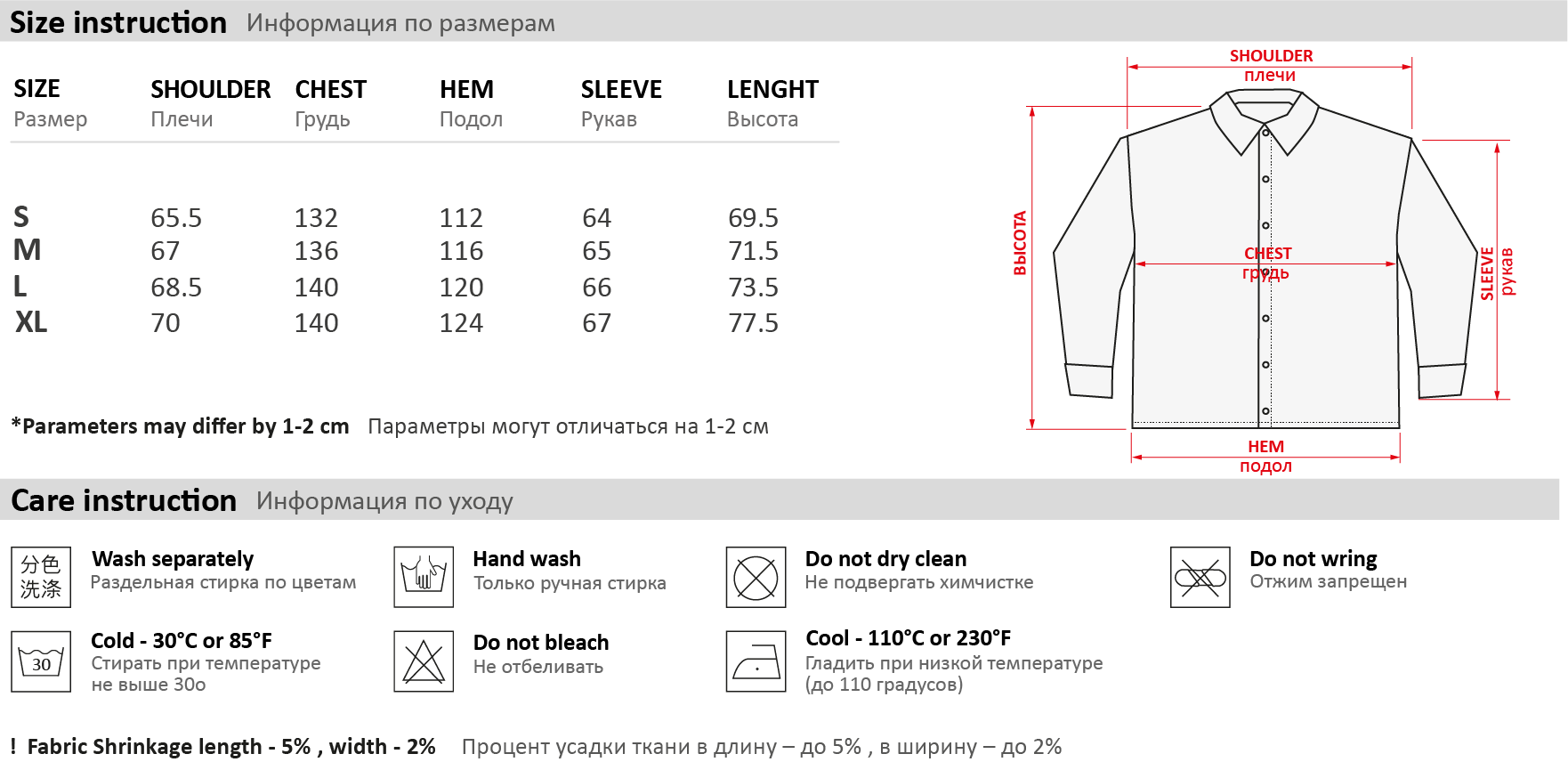 Таблица размеров